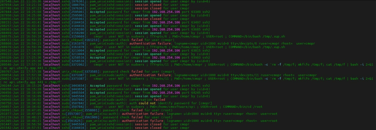 O log de autenticação presente no vazamento corresponde exatamente a esse intervalo.